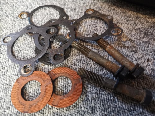 Finally, the new bolts (the larger ones I got stainless steel) were ready to be fixed in place. It's important to use anti-seize spray or liquid on these threads, to make it easier in future for disassembly but also to prevent corrosion.
