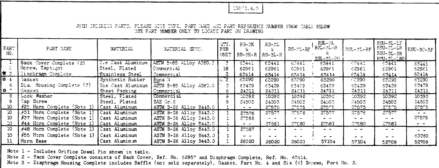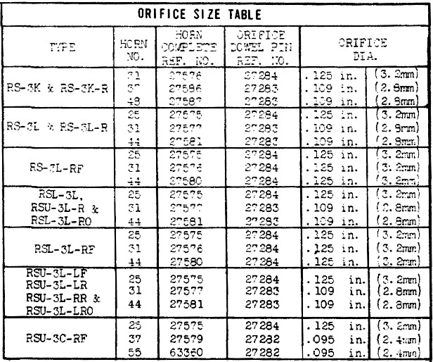 Leslie RS-3 Orifice Sizes and Part Numbers