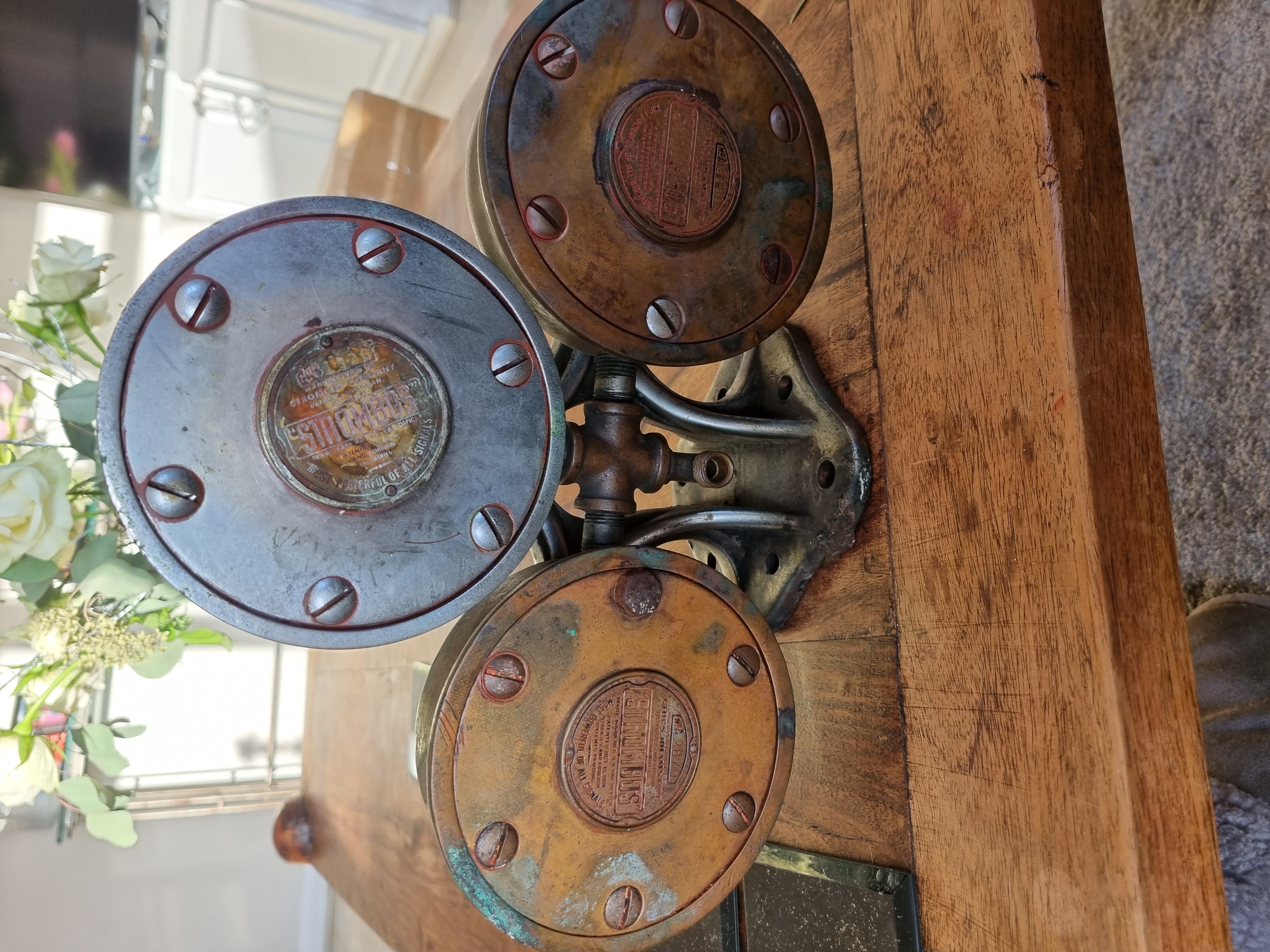 They were not really popular as "large ship" horns (though they made claims to that market), but were widely used on smaller commercial boats, motor launches, yachts, etc. They were relatively expensive in their heyday, and sort of a status symbol for "pleasure boaters." A triple Strombos horn like yours would have represented a very serious investment in the 1930's. Back when I was still quite active in the hobby, I used to get a call now and then about a "Rhamstine" Strombos horn that was ailing, but even then they were getting fewer and farther between, and they were mostly horns that had been removed from a long-gone, wood-hulled "family boat."