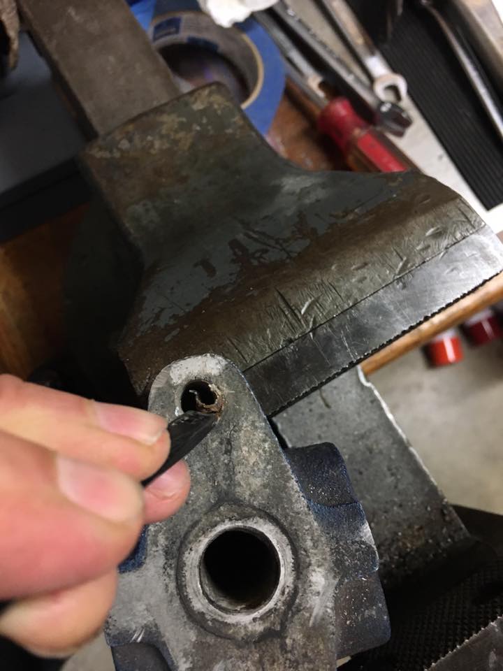 "Ex-Amtrak AEM-7 937 K5LA manifold repair. Remove stuck hex socket pipe plug in base (which for additional fun has a stripped-out head) and the remains of two 3/8-16 bolts after someone made an attempt to drill them out but the drill wandered and left a significant amount of the old bolt. First I removed the remains, then set up on the mill to install helicoils at the proper bolt spacing 2.750."